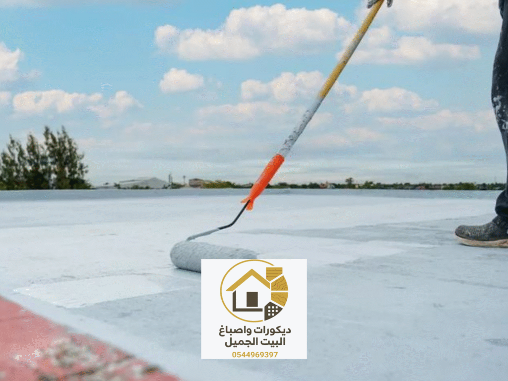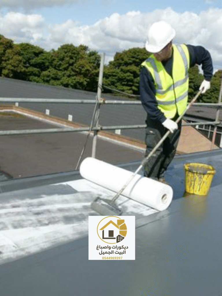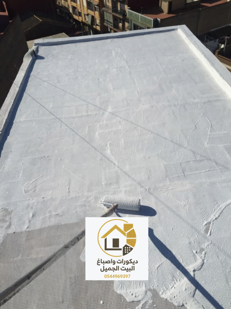 3. وضع الطبقة الاولى: عباره عن طبقة لاصقة تثبت العازل بالسطح بشكل قوي.